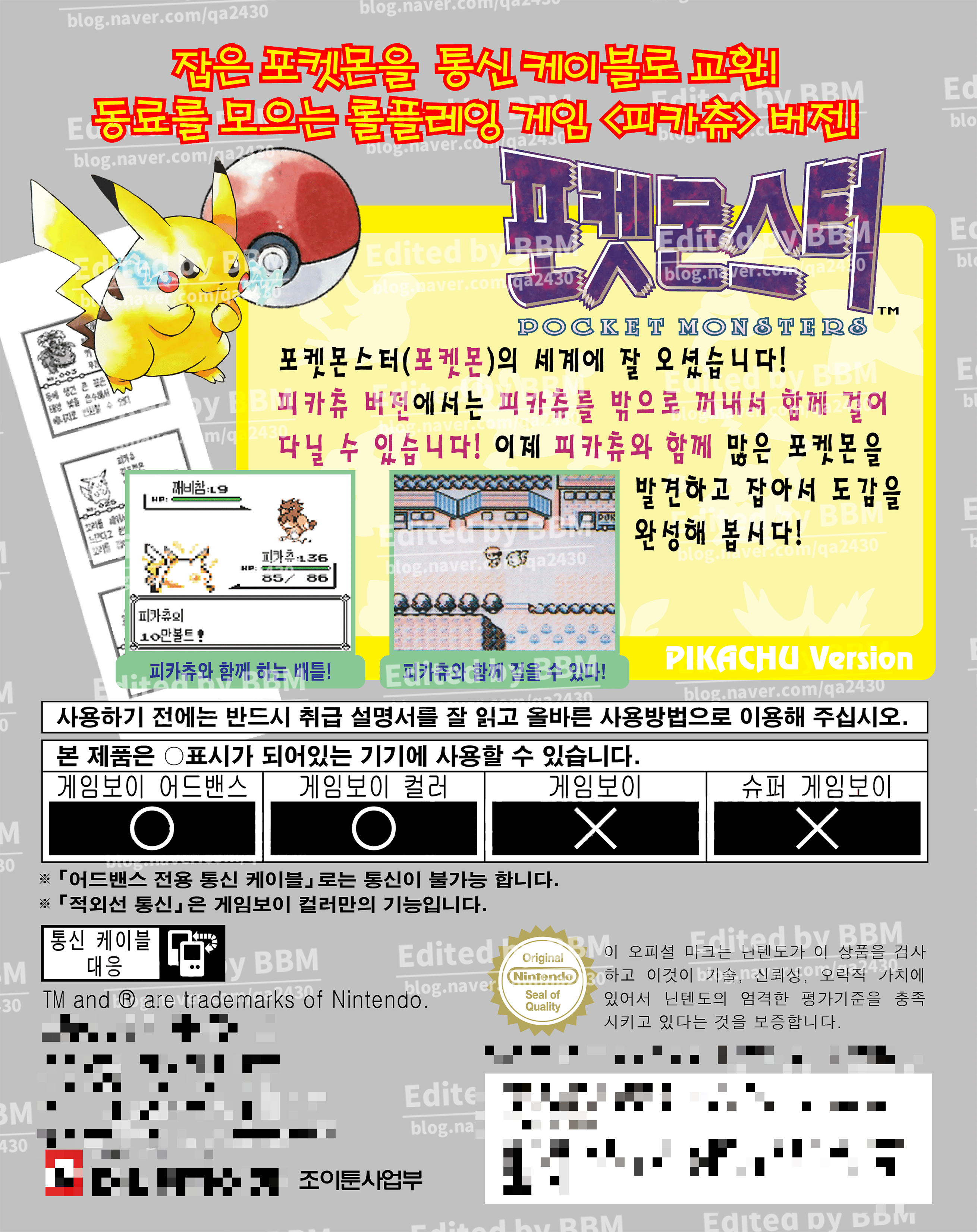 1. 해당글에서는 포켓몬스터 피카츄 버전 (옐로우 버전)의 "한글패치 파일"을 배포하고 있습니다.