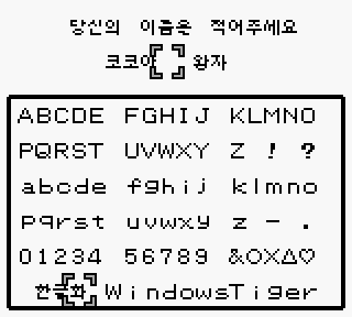 이름을 지을때 맨 아랫줄을 이용해 한글 이름을 지을 수 있습니다. 맨 아랫줄의 키보드 문자는 다음과 같습니다. X코코아X X실루아X X메그리나 (X는 스페이스)