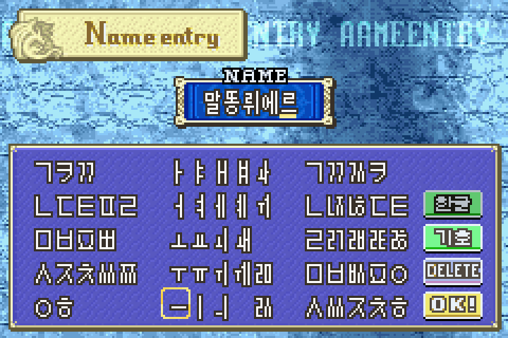 1. 해당글에서는 파이어 엠블렘 열화의 검의 "한글패치 파일"을 배포하고 있습니다. 2. 해당버전은 언제든지 임의로 업데이트가 될 수가 있습니다. 3. 본 패치를 필자의 허락을 받고 링크까지 포함해 다른 사이트에 올리는 것을 허용하지만, 무단으로 배포하는 것을 금지합니다. 4. 본 패치는 xdelta 패쳐를 이용하여 원본롬에 패치를 해야하며, 이는 인터넷에서 검색하여서 찾을수 있습니다. 5. 버그 또는 오역, 오타가 있을 경우 댓글을 통해 알려주세요. 6. 롬의 용랑 확장으로 인해 일부 에뮬레이터에서 동작 오류를 일으킬수 있습니다. 이럴경우 롬의 용량을 32MByte로 확장시켜 주세요.